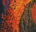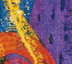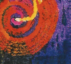 Die feurig schöne Energiespirale dieses Teppichs kreist immer schneller immer enger um sich selbst, bis sie rotglühend implodiert: Sinnbild des Jagens nach Erfolg und Einfluß, das Lob unserer Welt, welches unsere Zukunft aufzuzehren droht! Braucht's erst die Not, damit wir seine selbst- zerstöreriche Ausweglosigkeit durchschaun und uns durch eigenes Leid und tieferes Verstehn aus unserem Egotripp befreien können?